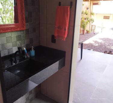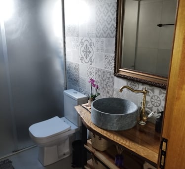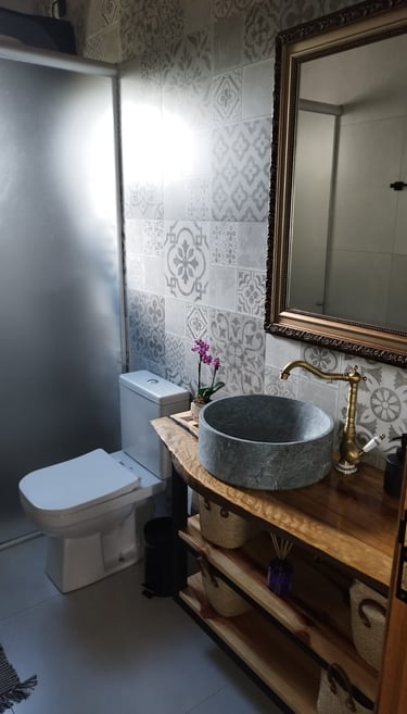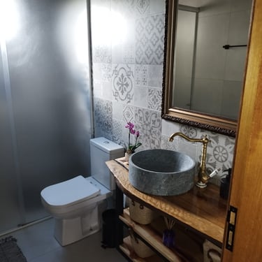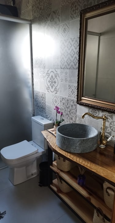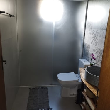 Ter banheiros nas suítes é ótimo para a privacidade, e a presença de banheiros nas áreas comuns é fundamental para quando se está usando a cozinha ou a área gourmet.