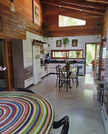 Ter a cozinha e a área gourmet à disposição realmente faz toda a diferença para quem gosta de cozinhar. É ótimo poder preparar a própria comida e sentir-se em casa, mesmo estando longe.