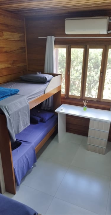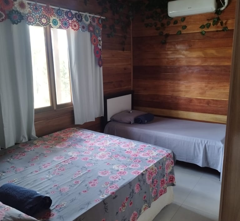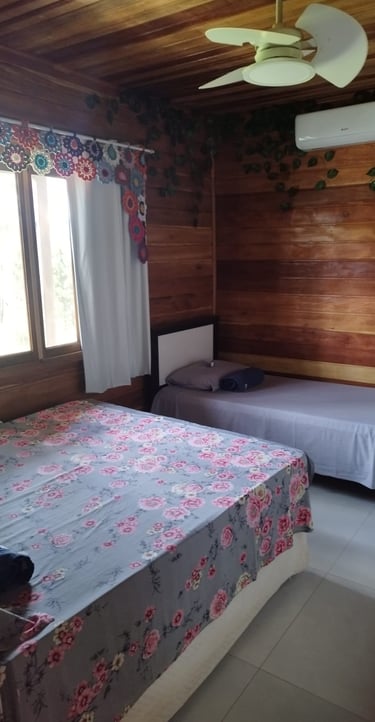 Essa suíte parece oferecer o equilíbrio ideal entre conforto e charme: Com ar-condicionado e uma cama confortável, o descanso é garantido. Excelente por receber até 4 pessoas, o que é ótimo para famílias ou pequenos grupos.